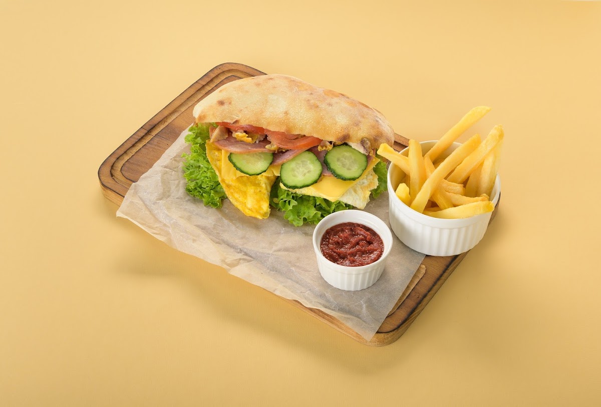 The café features a delightful array of menu options that cater to a range of tastes. If you're a pizza lover, don’t miss their Мясная Пицца, a savory masterpiece topped with a rich tomato sauce, tender minced beef, a medley of bacon, ham, chicken thigh, and two types of cheese, complemented by colorful bell peppers and olives—all for just RUB 465. Or, opt for the indulgent 4 сыра Пицца with its creamy sauce and a selection of four cheeses, priced at RUB 470. If you're in the mood for something hearty, the Сэндвич XL is a must-try. Stuffed with chicken fillet, ham, omelet, cheese, fresh vegetables, and served with crispy French fries, this satisfying dish is offered at RUB 395.